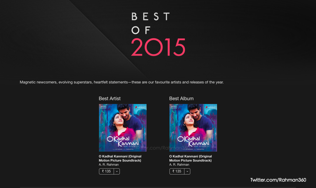 Among all Indian albums, AR Rahman’s O Kadhal Kanmani has been selected as the album of the year. Rahman has also been announced as the artist of the year.